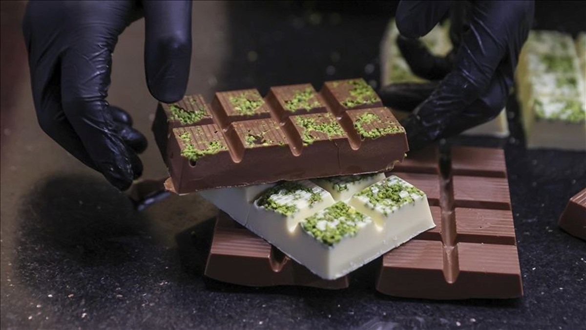 Dubai çikolatasının, antep fıstığı ezmesi ve künefe dolgulu sütlü çikolata tarifi Birleşik Arap Emirlikleri’nde (BAE) butik bir çikolata mağazasına ait.