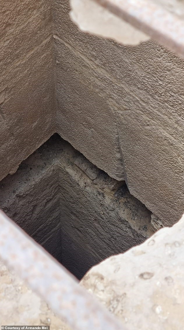 Elde edilen veriler, kumun altında geometrik olarak kesilmiş, yaklaşık 40 metre derinliğinde üç şaftın varlığını ortaya koydu. İlk kuyu, Sfenks’in kuzeydoğusunda yer alıyor. Kare biçimli girişi kireçtaşı bloklarla çevrili.