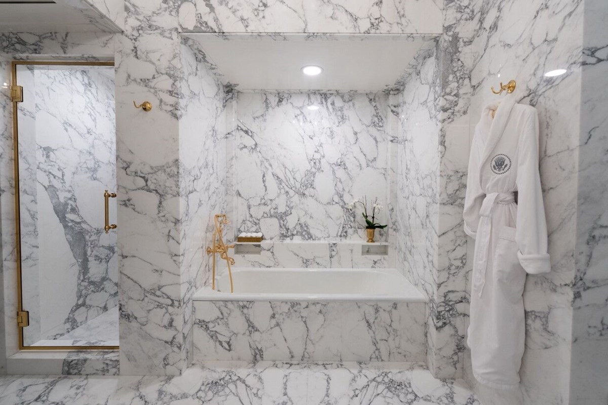 Amerikan kamuoyunun gündemi hükümetin 1 aydır kapalı olmasıyla meşgulken Başkan Donald Trump Beyaz Saray’da yenilenen banyoya ilişkin paylaşım yaptı: Lincoln Banyosu’nu yeniledim…
